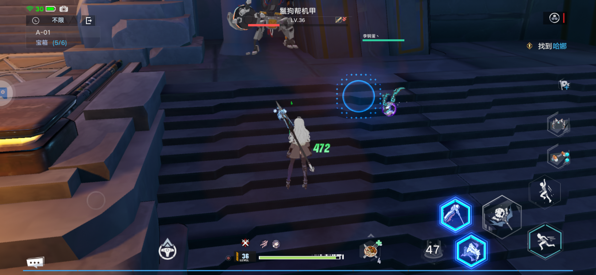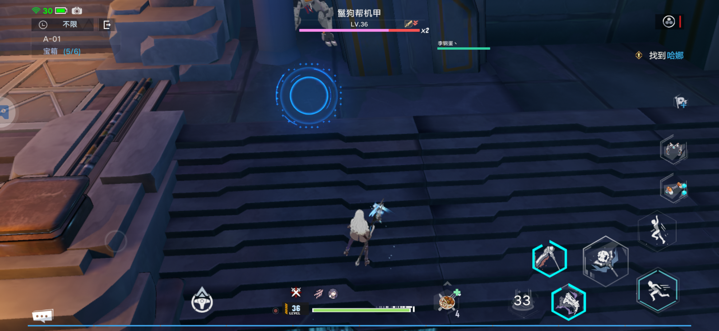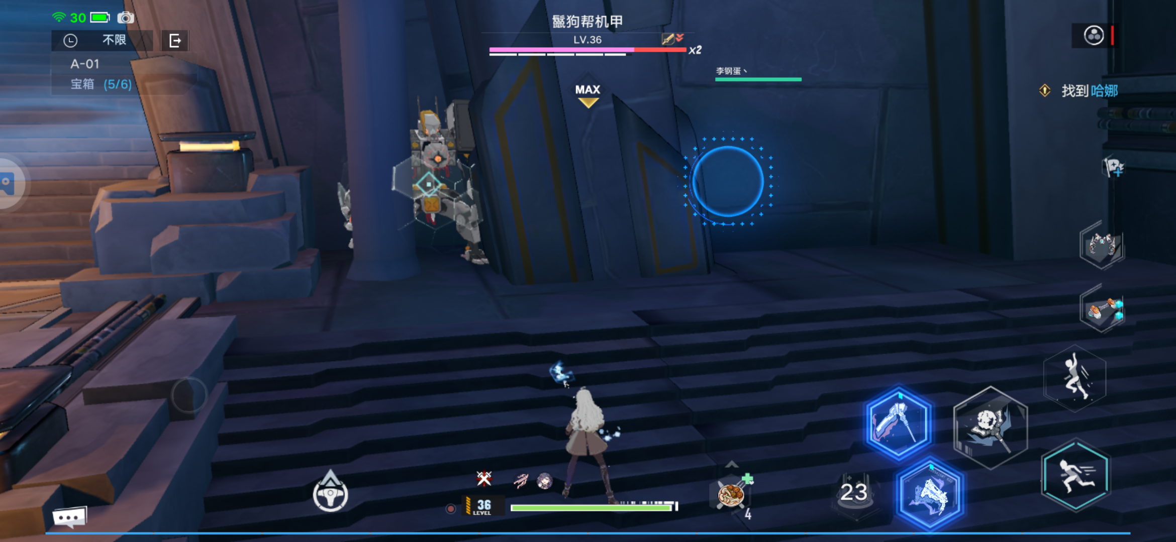 注意它是可以释放技能的,但是地形原因会被柱子挡住很多,我们只要控制好距离和血线,战力再低也能磨死它。