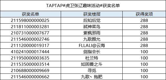 获奖名单|虎卫张辽趣味活动