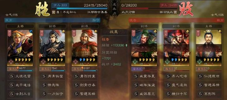 SP朱儁群弓,对于陆逊还是有一定的克制,兵种优势和兵力差持平,最终小胜!