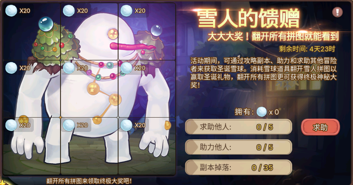温馨提示:翻开所有拼图还有神秘大奖在等你!活动结束后,雪球道具会被系统回收,请及时兑换解锁!