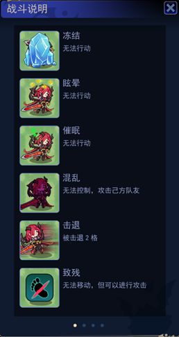 3、不良状态相关:不同的攻击和技能会触发不同的异常状态,战斗中需要对此有所了解.不良状态包括: