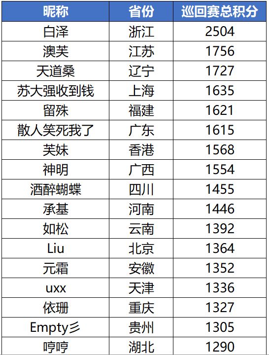 那说回到我们巡回赛的“天津站”,各位大佬们也是在“天津站”各显神通,唯独可惜的是,首日战绩全国前8里面没有看到来自天津小伙伴的身影,不过没关系,时间还有很久,东道主的小伙伴再努力一把呀!!