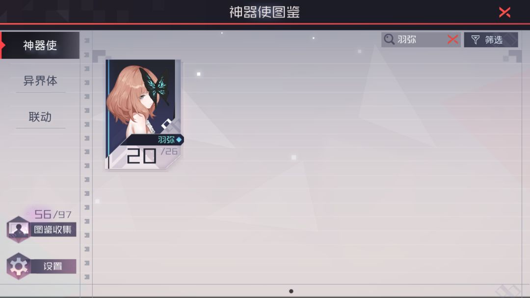 搜索筛选功能可进行神器使的搜索排列,设置功能可进行图鉴封面设置。