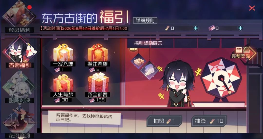 活动期间,使用福引签可以前往钟函谷的福引机处参与抽奖,获得超值奖励!