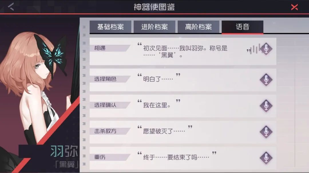 语音界面可播放查看神器使台词语音,达成图鉴收集功能的条件可获得全新头像框与对应特效。