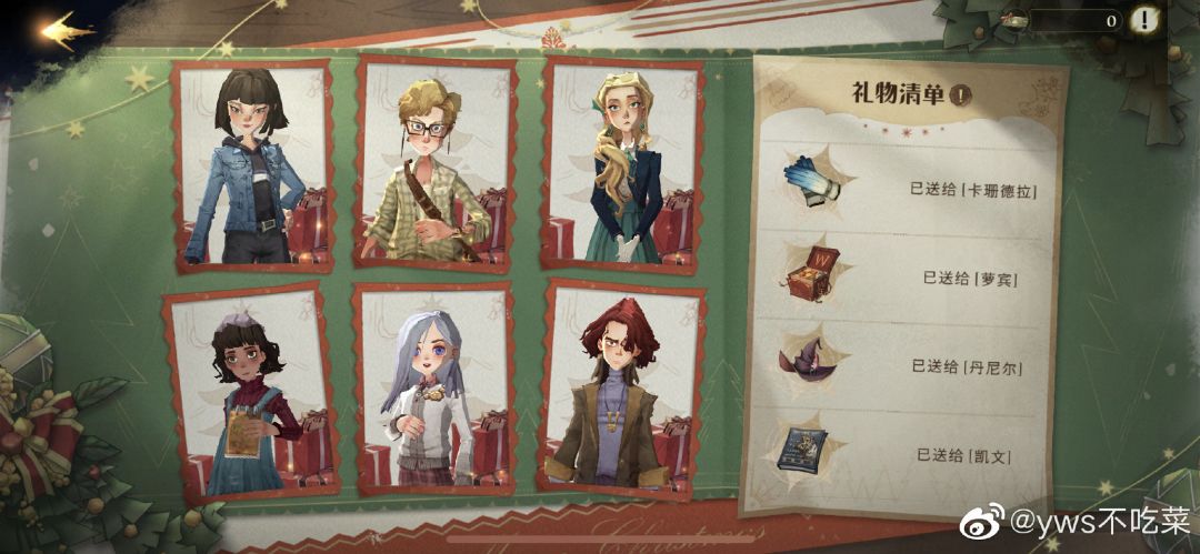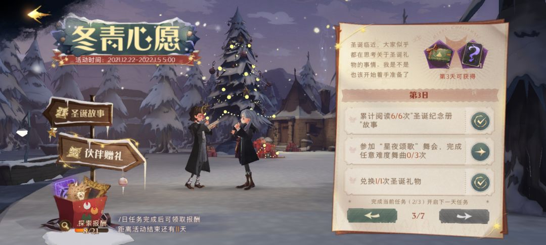 12.24的凌晨5.00开始可以给伙伴送礼物,一共八个,每次赠送都会获取雪花;