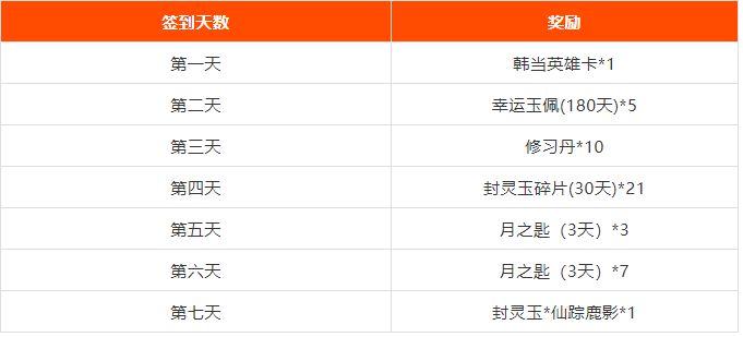 大家只要在活动期间坚持上线签到完成全部的任务,签到七天即可领取韩当的全新封灵玉仙踪鹿影。