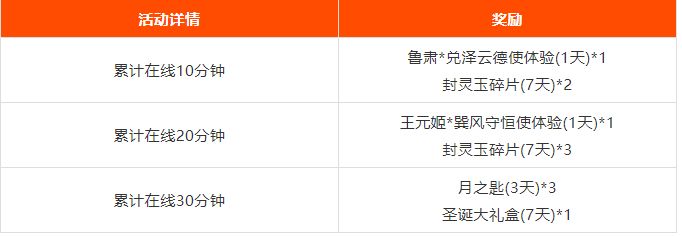 活动期间在线30分钟即可获得台牌饰圣诞大礼盒!