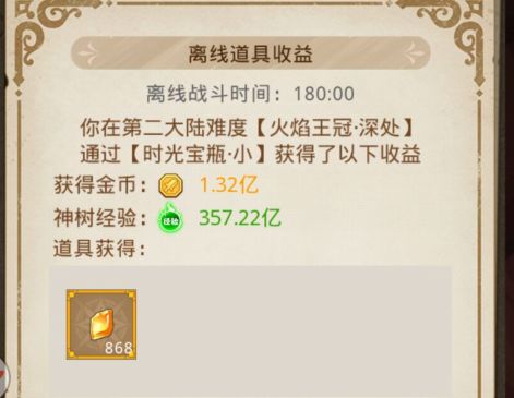 9.关于以太掉落。二大陆的以太是按最高图累计产出的,即使你不在二大陆挂机,系统也是默认这些材料是你“应得”的。所以玩家一般都是白天离线在一大陆挂机金币/魔晶,然后到晚上再利用1小时左右的时间上线到2大陆收取材料。具体如下:一大陆挂机金币/魔晶若干小时(在线离线都行);(上线后)直接到二大陆最高图打死一两波小怪;然后切换到二大陆1-7挂机,这时候小怪会疯狂爆材料给你,一直在线挂机到小怪不怎么爆材料就行。还有关于地图基础以太掉落和荒古魔女以及感恩节称号的关系,称号跟荒女效果是累加的,实测最终以太数量=地图基础以太数量*以太塔系数(满级3)*[1+感恩节称号(0.1)+荒古魔女加成(满级0.15)],以5-100为例,100级以太塔实测,868(不带称号和荒女),1085(带称号和荒女)。