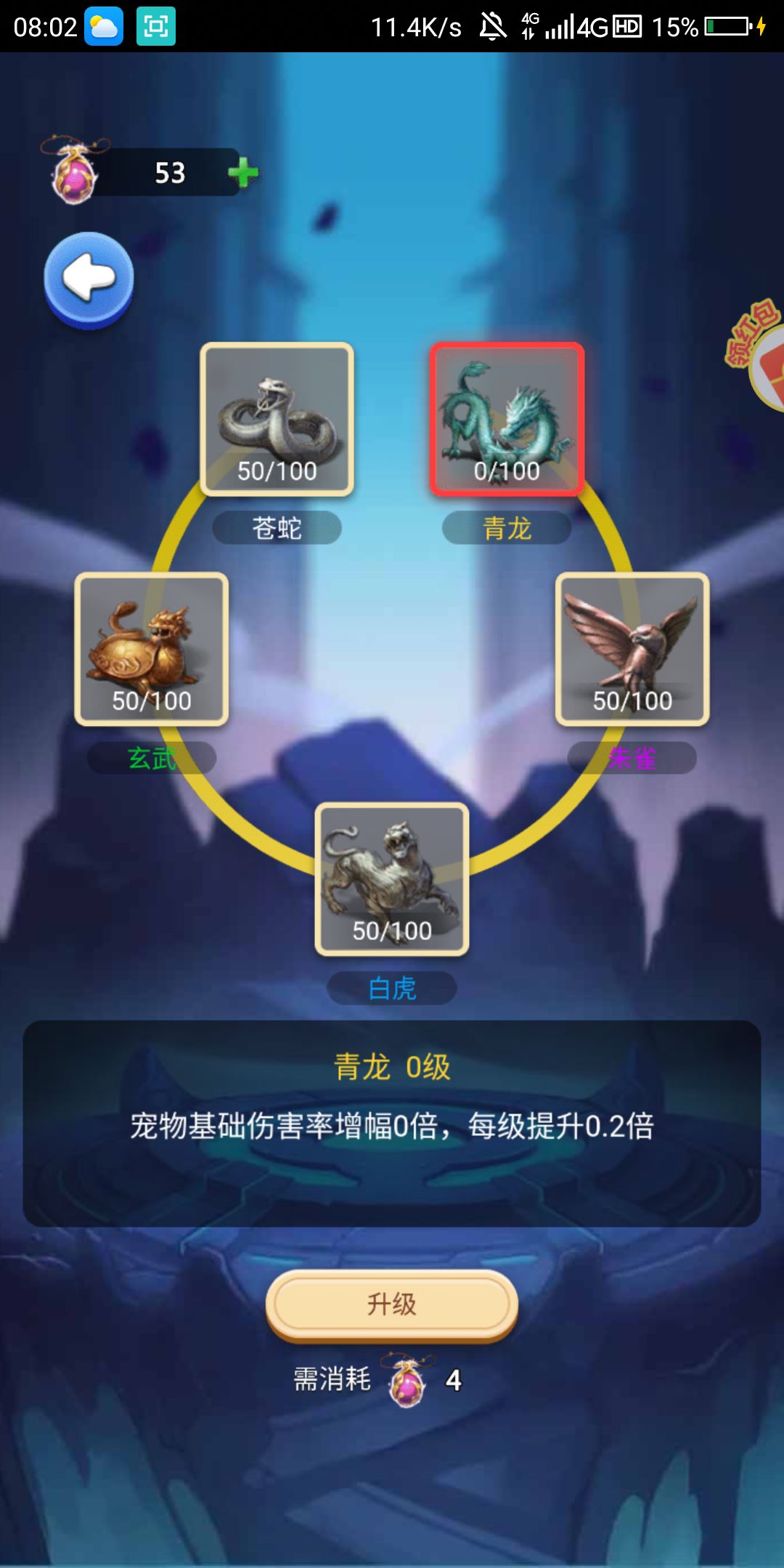 朱雀每击杀一个怪叠加50倍伤害,一关打剩最后一只怪,也就是50^24倍,看起来很变态,逆天,其实也是毫无意义,等我分析完各个属性再综合分析就知道为什么也是毫无意义了!