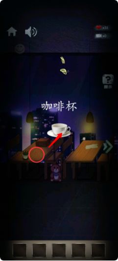 1.在最左边房间拾取“咖啡杯”,到最右边房间倒入咖啡,获取咖啡色表情信息。
