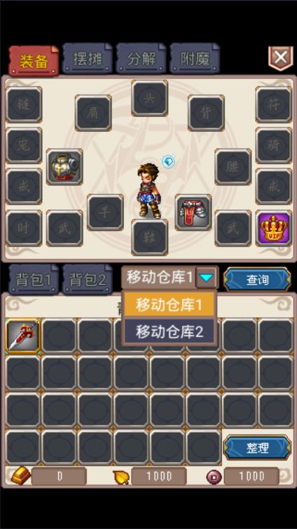 【新增移动仓库】 背包太小?需要使用与更换的装备根本放不下?每次都需要回城放置道具?不如来试试“移动仓库”!新版本中,可在背包界面开启移动仓库。只需轻轻一点,即可将道具放置到移动仓库中。再也不担心副本打一半,突然想起重要的宠物装备没有携带而中途回城啦~