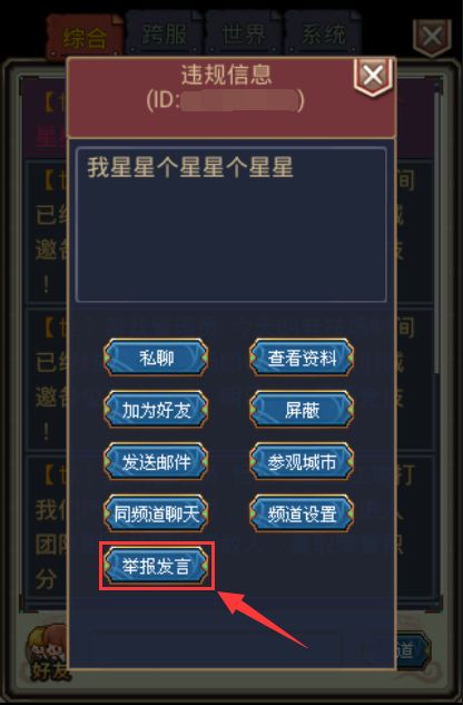 不少友友们有过被世界频道一些违规喊话所困扰。为此我们加入了聊天举报功能,如遇到不雅言论与违规言论,可直接点击该玩家的发言,将其举报。我们收到后会第一时间核实并对其进行相应处罚哦~