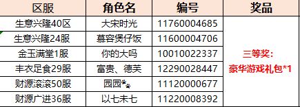 三等奖6名:豪华游戏礼包*1