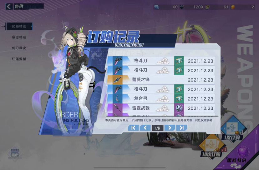 然后我昨天白天爬起来,又抽了两下单抽一下十连,又给了我一个大剑!!!这下就是两个十连两个金了!所以我这次的八十抽加起来就会有三个!!!!