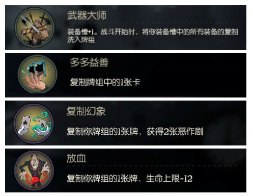【灵魂超度】契约师很缺蓝,不是汲取流也可以选。【灾厄之力】生命上限换法力,上面提过,超值。【死神硬币】不影响牌型,可以加成起手的死亡收割和后期的筛子等。不和核心祝福冲突的话可以拿。