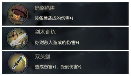 【奶酪陷阱】装备伤害+1,多段伤害的共同点,增伤。【剑术大师】【双头剑】等增伤祝福。