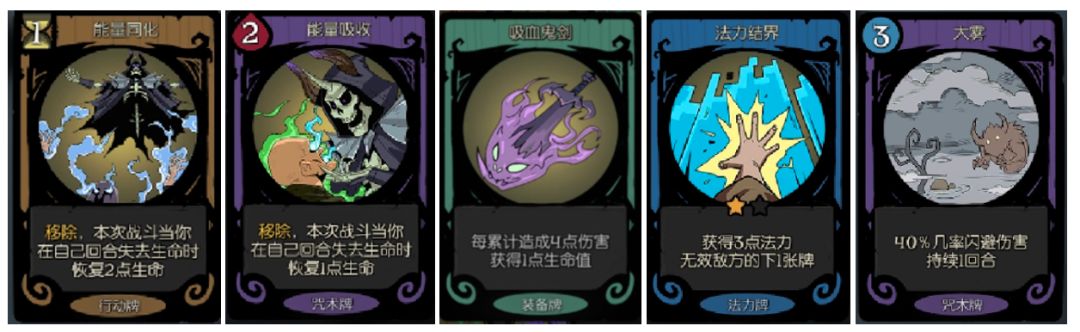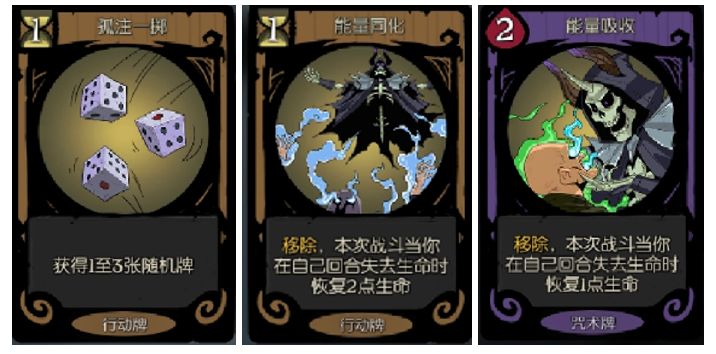 【缺点】单纯的汲取伤害不高,很容易暴毙,而且非常容易卡怪,遇到有回蓝技能的高爆发怪直接暴毙,比如熊法师。还有破法的怪也比较难缠(注意,汲取不属于伤害卡牌,遇到造成伤害失去所有蓝和行动力的可以放心吸吸吸)。