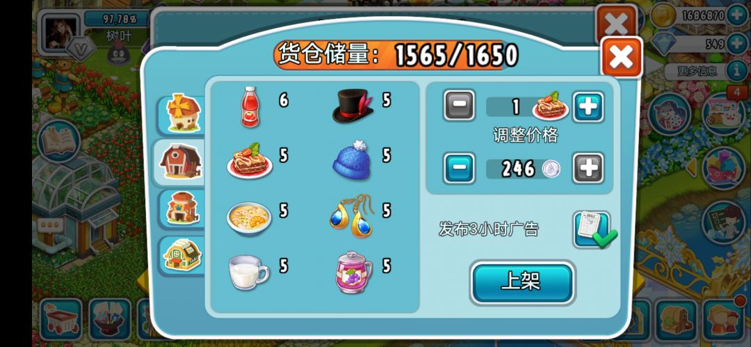 换好后打开摊位卖出,这个东西很好卖,记得上广告,属于一类货物