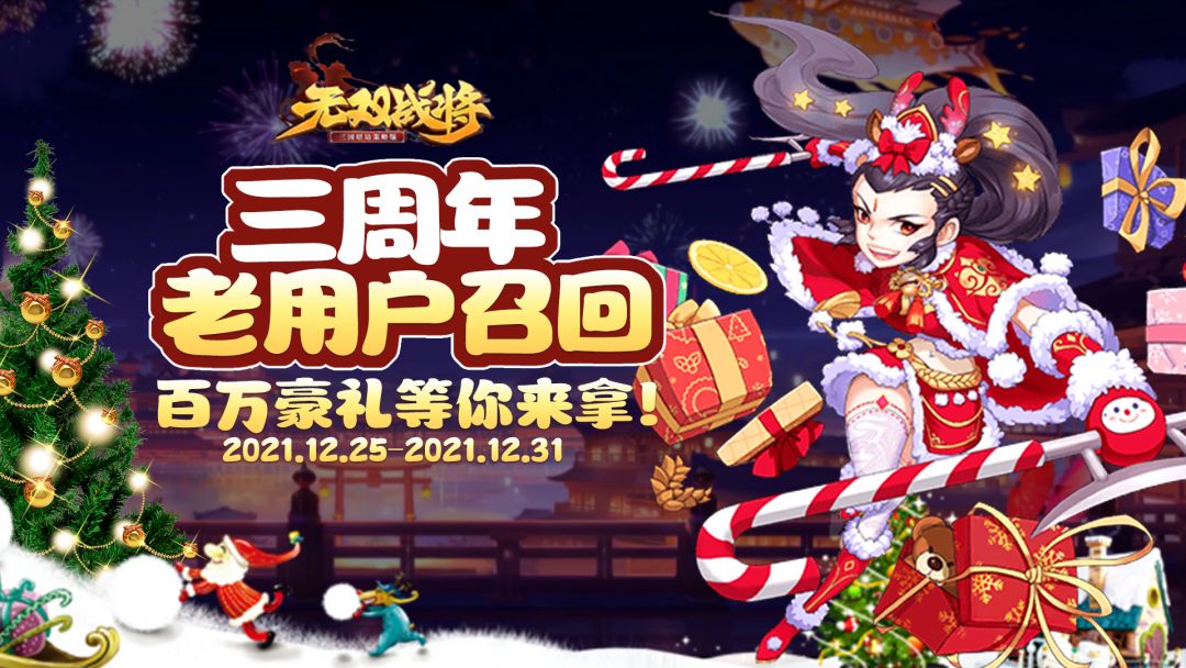 1、三周年老用户召回活动:响应与发起者都可免费获得(非卖称号)再战三国称号、百万豪礼等你来拿!