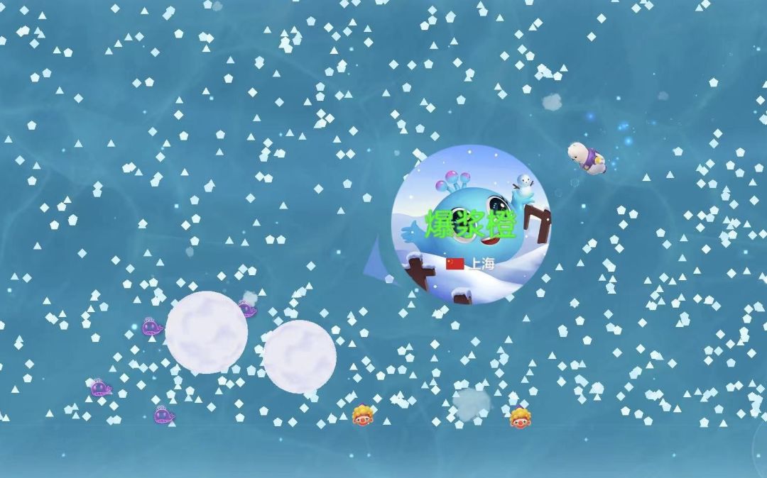 进入冰雪大乱斗后,球宝们会来到一个冰天雪地的地方,满场都是小雪花,在地图上会随机生成雪球,和雪球贴贴就可以把它随身携带,点击吐孢子键发射雪球击中敌人吧!