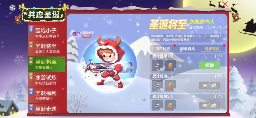 圣诞节即将到来,完成任务收集姜饼小人,领取惊喜奖励!
