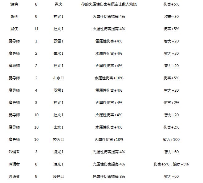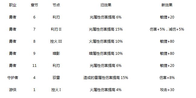 3. 调整各个职业的传承:由提高单属性伤害,改为通用的增加伤害或者属性效果