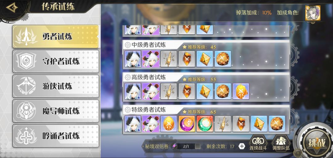 6. 传承试炼新增自动连战:玩家可以在传承试炼中使用自动连战了