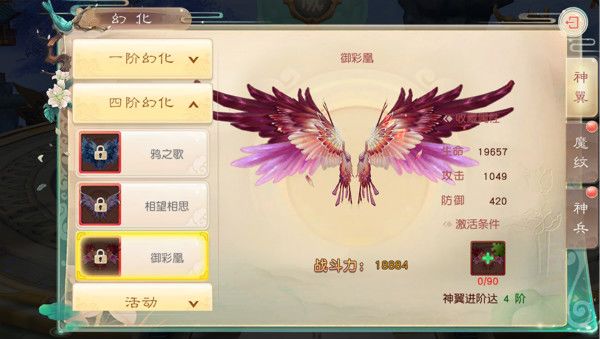 2、提升神翼阶位时可获得更多属性,同时神翼阶位也是激活各种神翼皮肤幻化的必要条件。