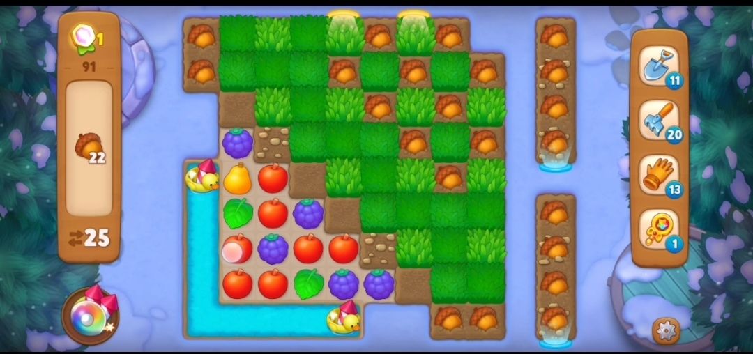 ①先观察一下开局,这一关一共是25步,需要消除的过关目标是橡实。