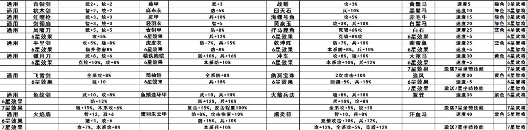 总的来说就是紫,黄,蓝,绿。但是值得注意的是,飞雪剑(黄)打架比火焰扇(紫)厉害,但是火焰扇冲铁第一名。鹰羽朱云甲(紫文甲)提升也不大,鱼鳞连环甲(紫武甲)加100%反击就厉害了,老六们就开始研究上了反击流,咱啥也不说了。武器护甲地图可以刷材料合成,宝物和坐骑只能寻访。