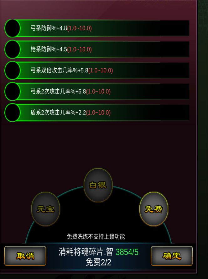 意思就是可以随机神兽的词条数值1-10,但是是所有的一起随机,如果想锁定词条,就每次1000元宝。