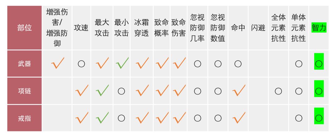 以下属性 3条√ 搭配 2条○ 即可称为极品。