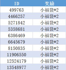 恭喜以下几位圣上获得【小福袋*2】的奖励~