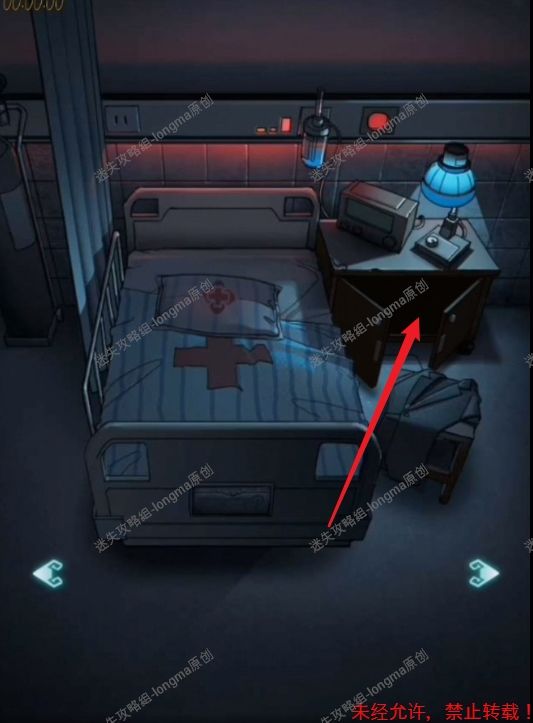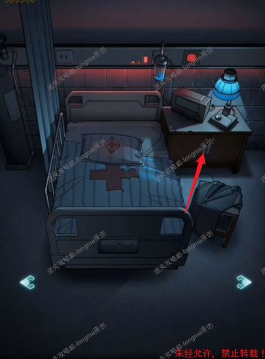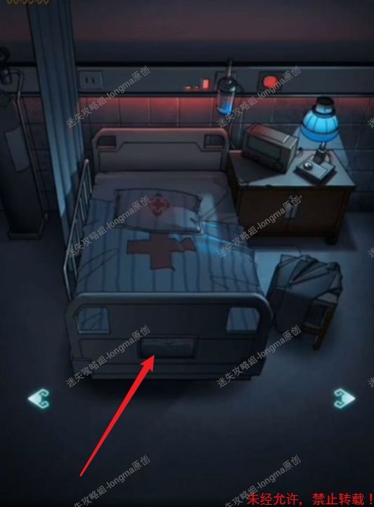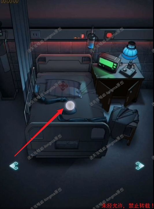 49.点击门触发剧情,向左来到病床房间,点击病床上的枕头,在枕头下找到手机。49