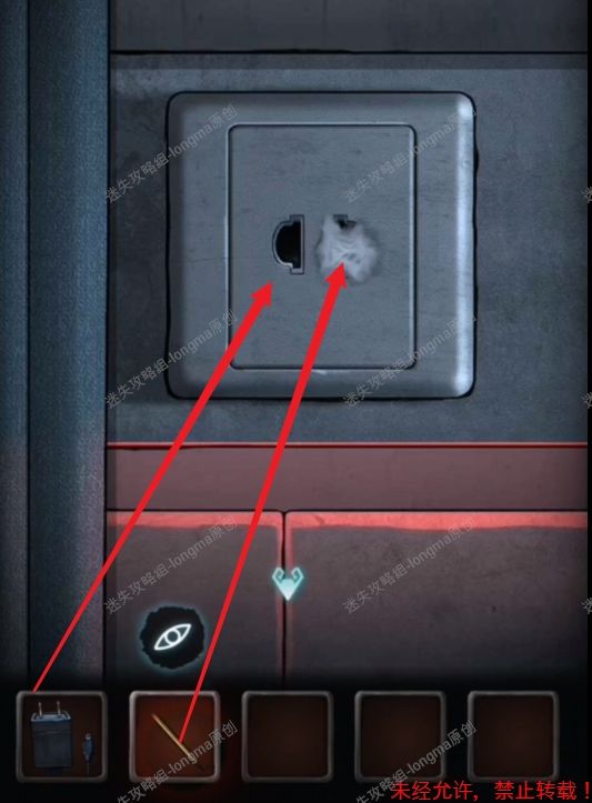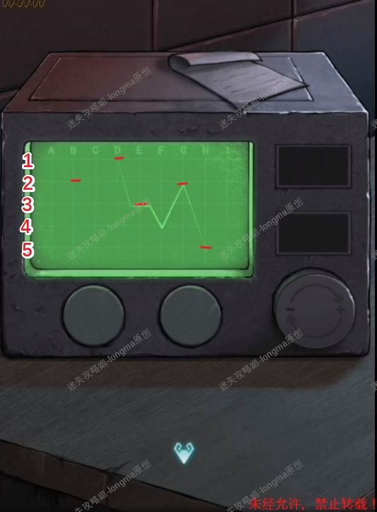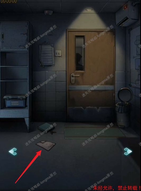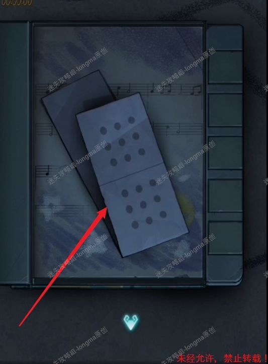 59.向右来到有收音机的房间,点击地上的密码本,根据上面得到的箭头顺序,从下往上依次输入,打开密码本,得到【纸条】。59 59.1