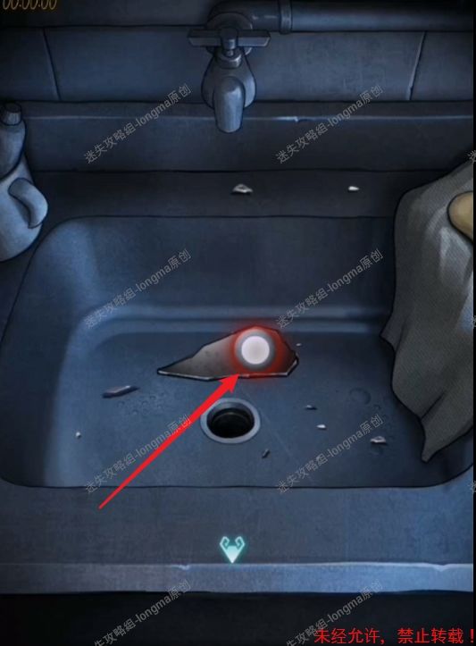 70.回到有水池的房间,对镜子使用【锤子】,在水池中得到【玻璃碎片】。70 70.1