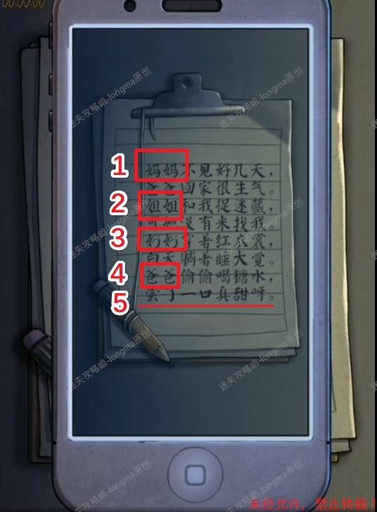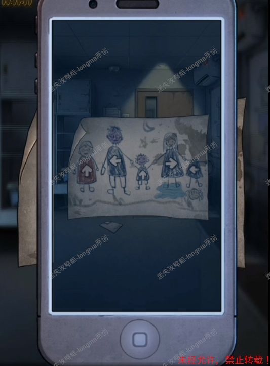 62.向右来到第一个房间,点击门左边的本子,使用【手机】查看,记住每个人的死亡顺序:1.妈妈,2.姐姐,3.奶奶,4.爸爸,5.小男孩。62 62.1