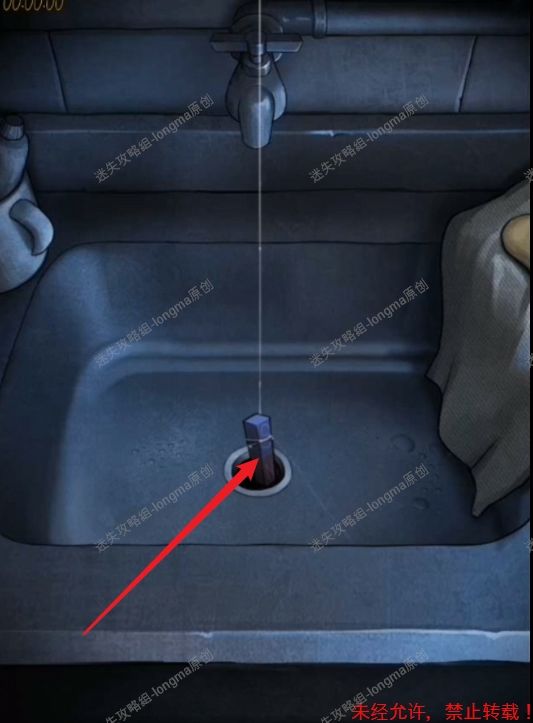 64.来到水池房间,使用【磁铁】和【风筝线】组成的【清理工具】,在水池中得到【钥匙】。64