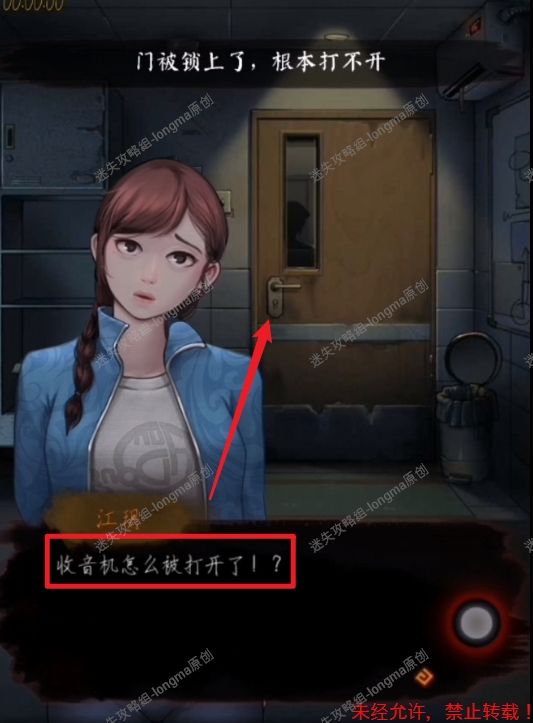 55.回到第一个房间,点击门,触发剧情,来到有收音机的房间,查看收音机。55 55.1
