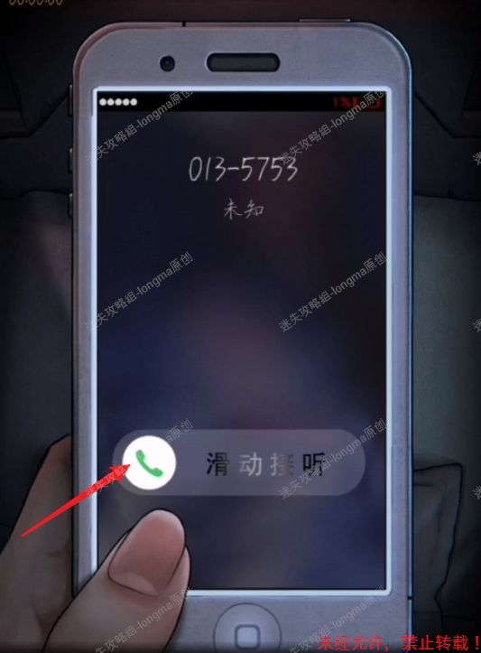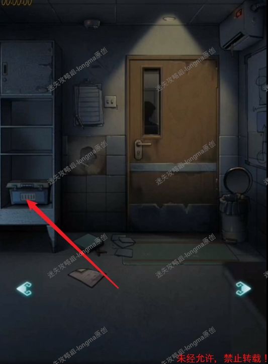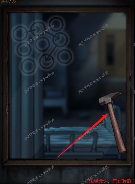 58.向右来到第一个房间,点击地上的纸,使用【手机】查看,记住顺序上、左、上、右、左。58 58.1
