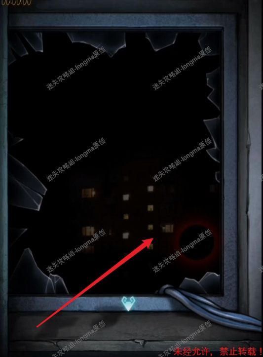 72.回到有水池的房间,点击没玻璃的窗户,使用【绳子】,逃出去,第三章结束。72