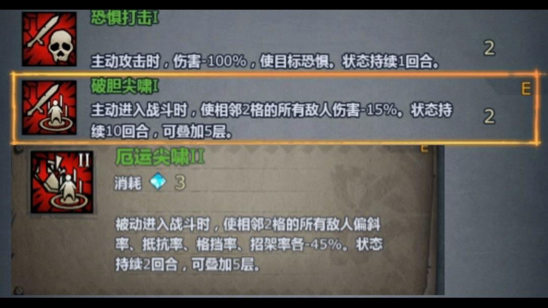 1快速连击,一费效果攻击后额外攻击一次,伤害更低,但可触发装备效果,这个技能可以说相当实用,使用条件低仅仅一费且反击也可以触发,二转弓箭手可以学习,通用性很高尤其适用带破甲和击晕特效的装备