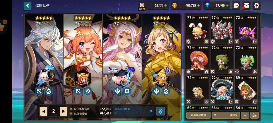 (角色篇)炼了绝对不会亏的二星角色三只手吉蒙里、小红帽诶尔韦拉、船长瑞秋、可可这些都是前期工会战过度角色。优先水、土、暗三队形成三板斧如下