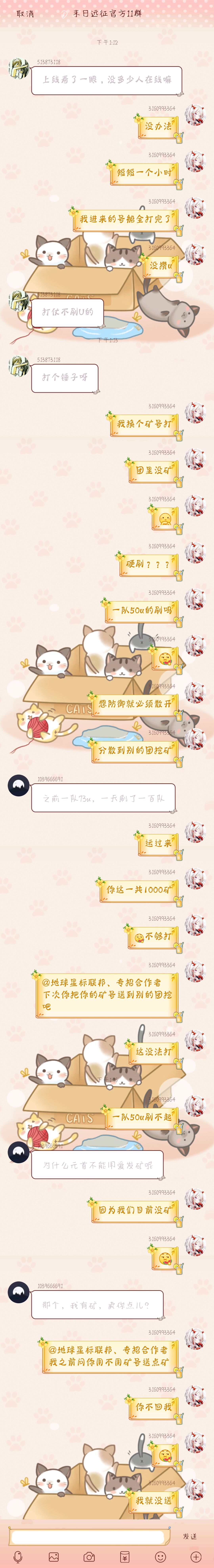 首先我想问一下管理小g,请问您从我记录里看到一丁点交易的话吗?请问我自愿送矿算交易吗?第二,这个游戏不能开玩笑了吗?馒头因为开个玩笑被踢,我因为旁观被踢?那么请您告诉我,您的远征天天卡bug算不算开玩笑呢?我可以理解为那不是开玩笑就是因为你们服务器不行呢?我充的钱(虽然不多,五六百的样子)都被你们吃了而不是维护服务器呢?(只是论证,没有针对的意思)如图