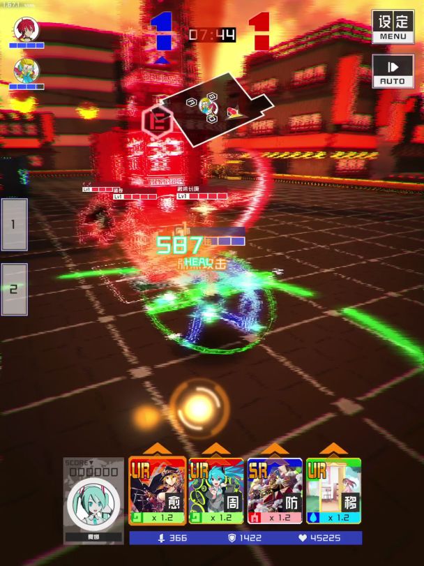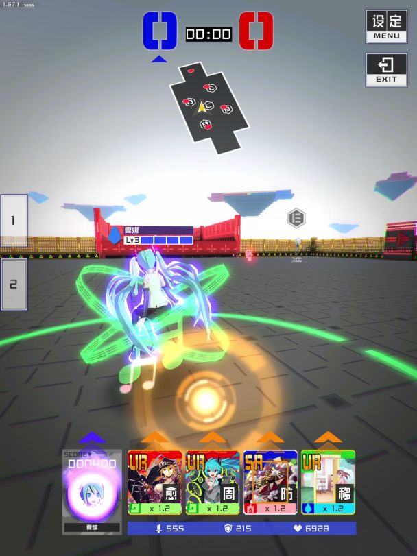 关于输出:初音1.05攻版,普攻速度很慢,但冲刺攻击加下滑克制属性的输出非常可观,并且可以打断放卡跟蓄力。冲刺攻击就是当角色冲刺一段距离以后脚下会出现显示攻击范围的绿圈,这时候敌人进入绿圈范围内,圈就会变成橘色并多出来一条锁定线显示被锁定的敌人是哪个。锁定线出现后松开蓄力即可发动蓄力攻击。攻击伤害数字出来之前下划卡片就能让这次攻击吃到划卡加成了。值得注意的是,冲刺攻击一旦发动成功(开始攻击),被攻击的角色就算在受到伤害前跑出攻击范围也是会吃到伤害的(这一点与英雄的普通攻击相同),即使绕柱也躲不掉。演示视频里的初音就是走出了攻击范围仍然受到了伤害。