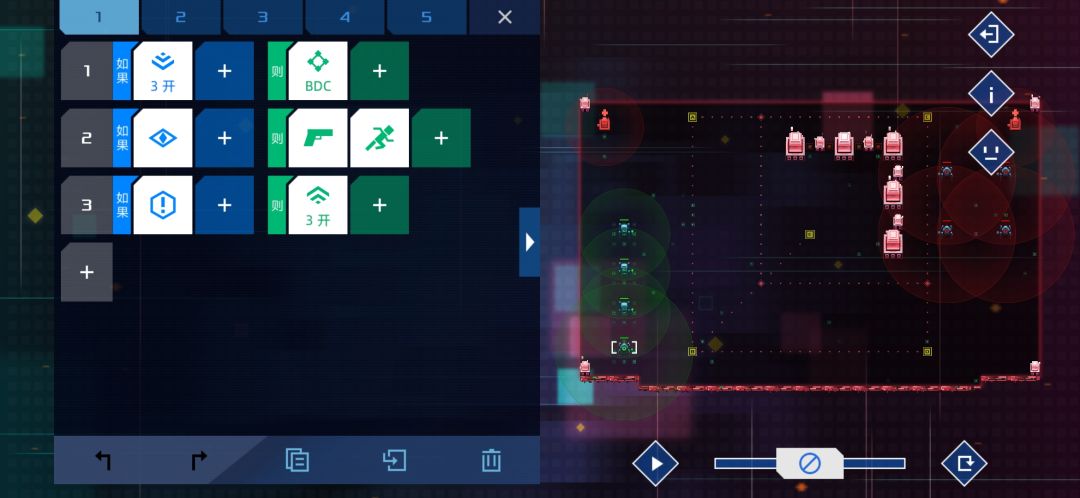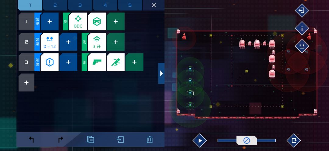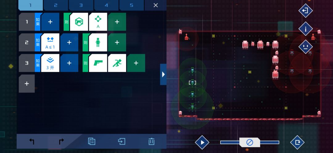 只要十一行,平均每个两行。根据红方行动规则,只要红方发现绿方就会撤退和移动向回复站,所以我决定关门打“狗”(侦察兵)。如下图各个机器人行动规则: