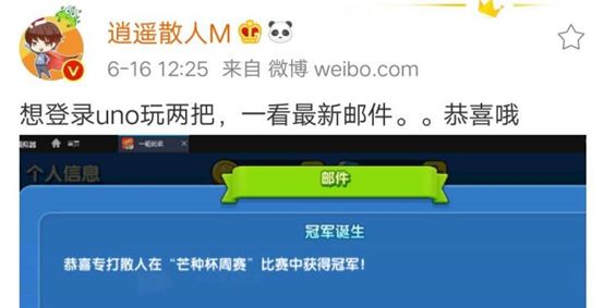 除了刚才说的,我其实还想给散人老师道个歉,喊个话。因为我这个名字,如果我是一个小透明的话,倒无所谓,就是玩笑一下,但是刚好拿了巡回赛的冠军,也获得了很多水友的关注,就想借此机会告诉散人老师,我很喜欢你的视频,这个ID呢,也没有什么恶意,希望散人老师可以继续加油,也希望可以有一天在UNO里和散人老师匹配上,给直播间带去一些欢乐。