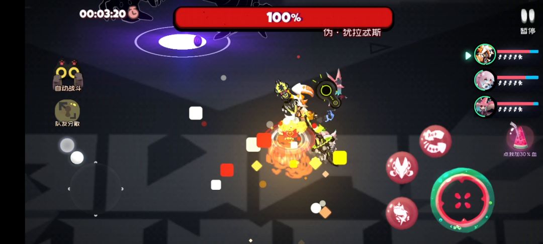 先开xh5的大,然后普攻几下,然后在开妖炽大,最后再开小狐狸的,顺序很重要,需要手动,暴击伤害可以少一点,这是那样的话,可能会有点容易翻车,这边注意,我那个血型是满的,差不多是两千攻击,60%暴击率,350%暴击伤害基本上就可以稳过,优先黄金山ss接近1000果冻,到这儿基本上也就结束了,你也差不多萌新毕业了,但还没入土[嗒啦啦2_滑稽]