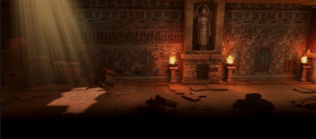 A:我们的初衷是给玩家一场沉浸式体验!除壁画外,游戏地图和场景我们也参考了中国各个知名石窟的外观进行还原。小到一个单间的光线设计,大到整个地图的场景建模,像《刺客信条》还原巴黎圣母院那样,在游戏中还原中国古代的文化瑰宝。